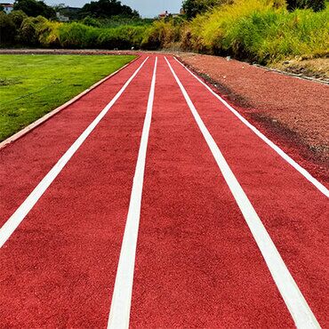 Pista de atletismo hecha a base de caucho SBR y resinas de poliuretano.